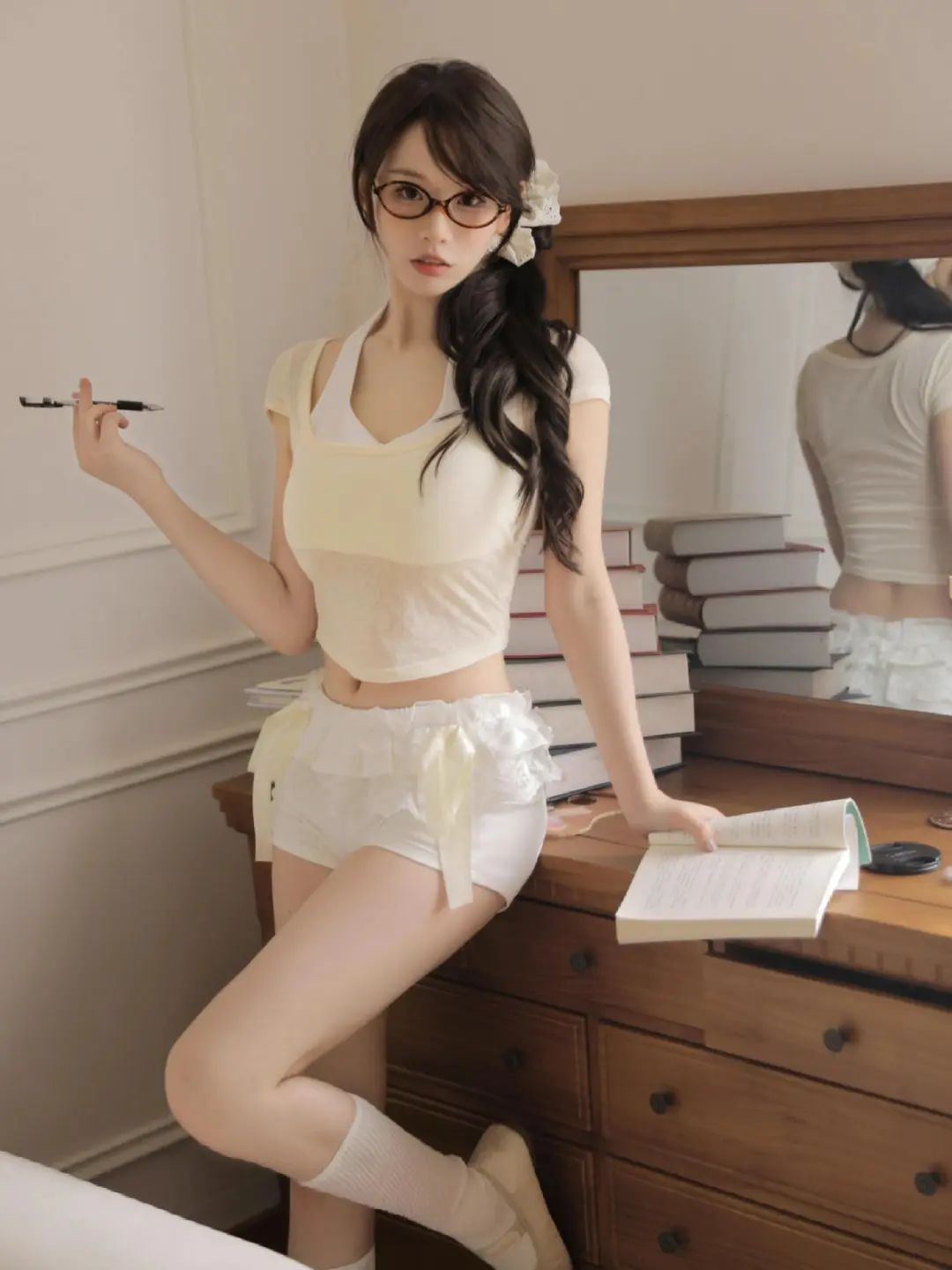 美女 | 干净的背景+白色吊带裙 氛围感这不就来啦!