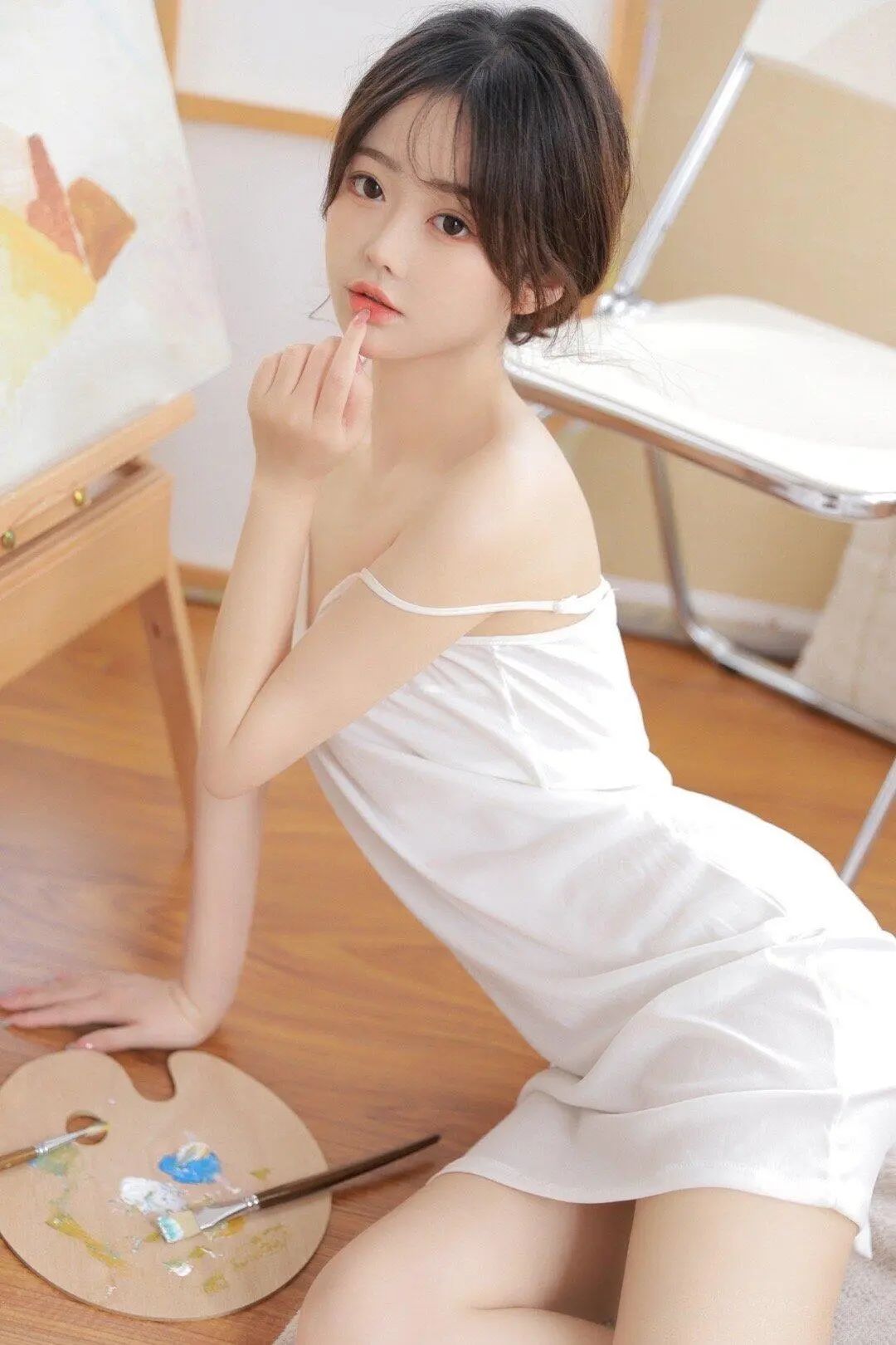 美女 | 干净的背景+白色吊带裙 氛围感这不就来啦!