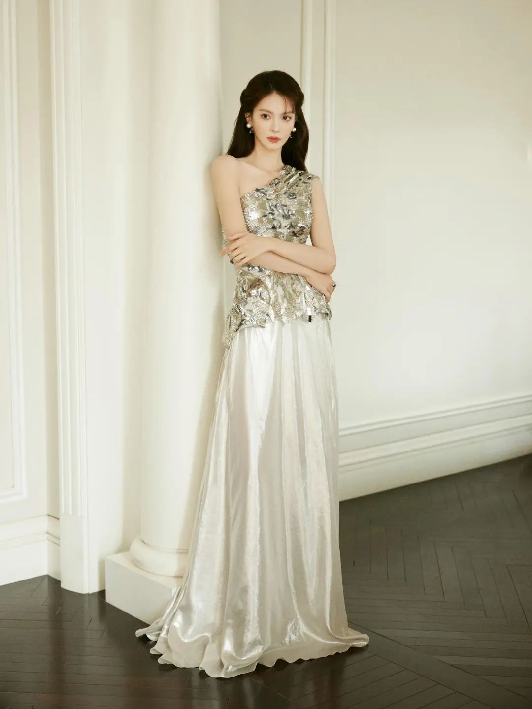 金晨高清写真壁纸,身着鱼尾礼服真的超美的