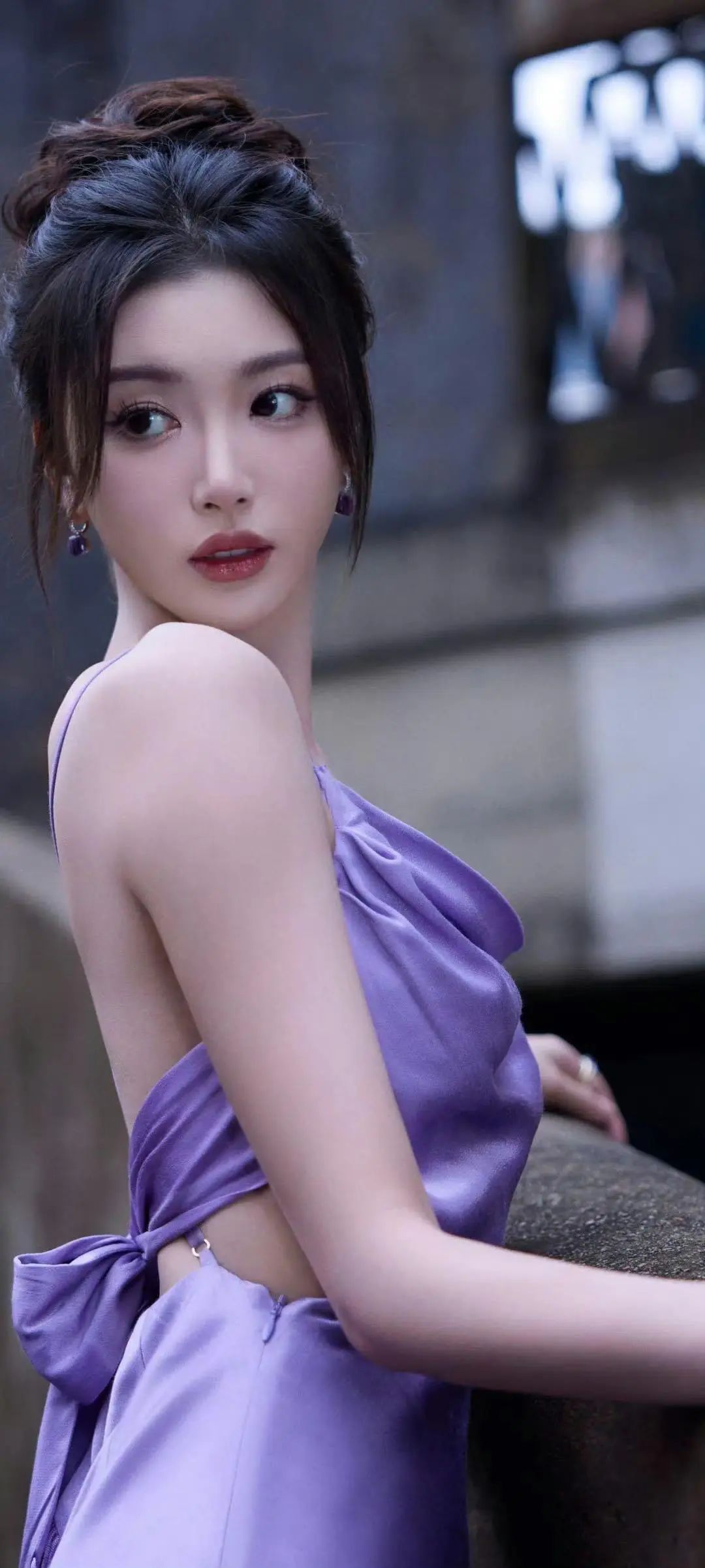 孔雪儿紫色吊带长裙,好有韵味