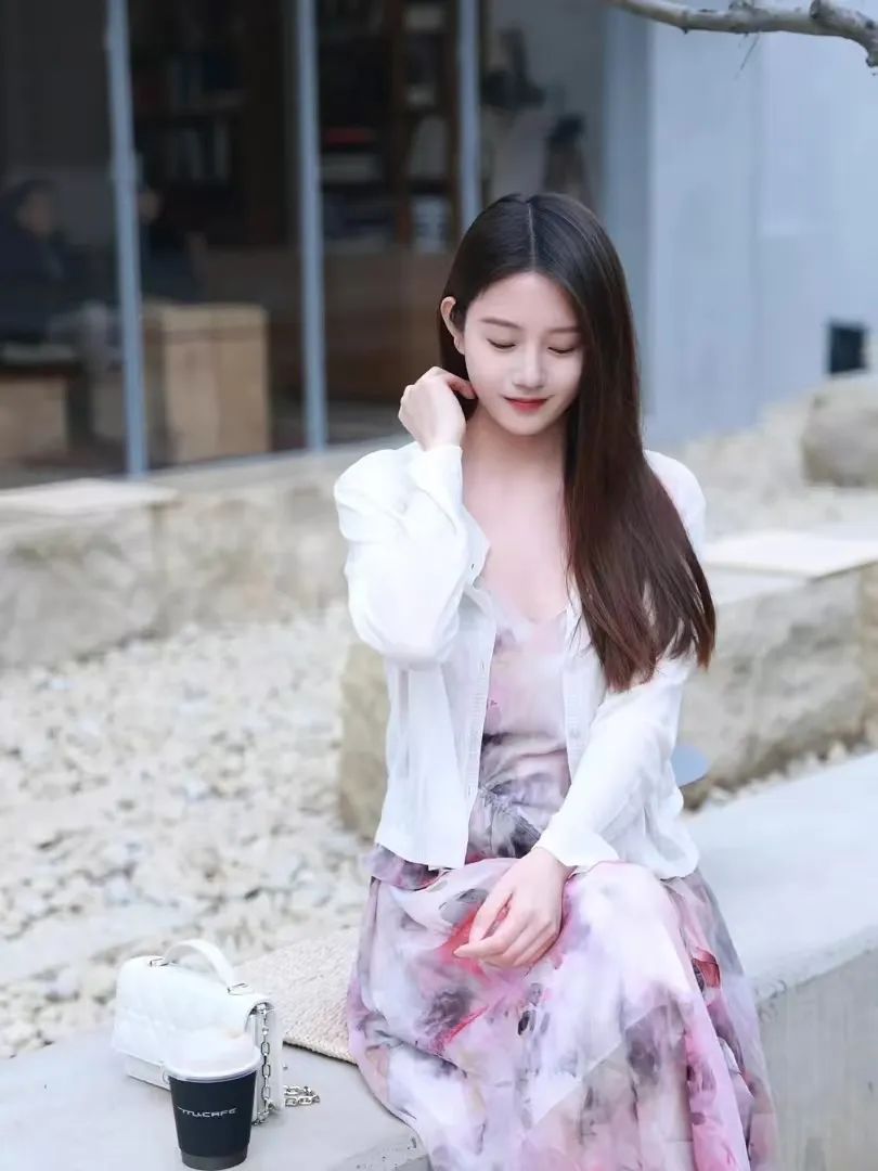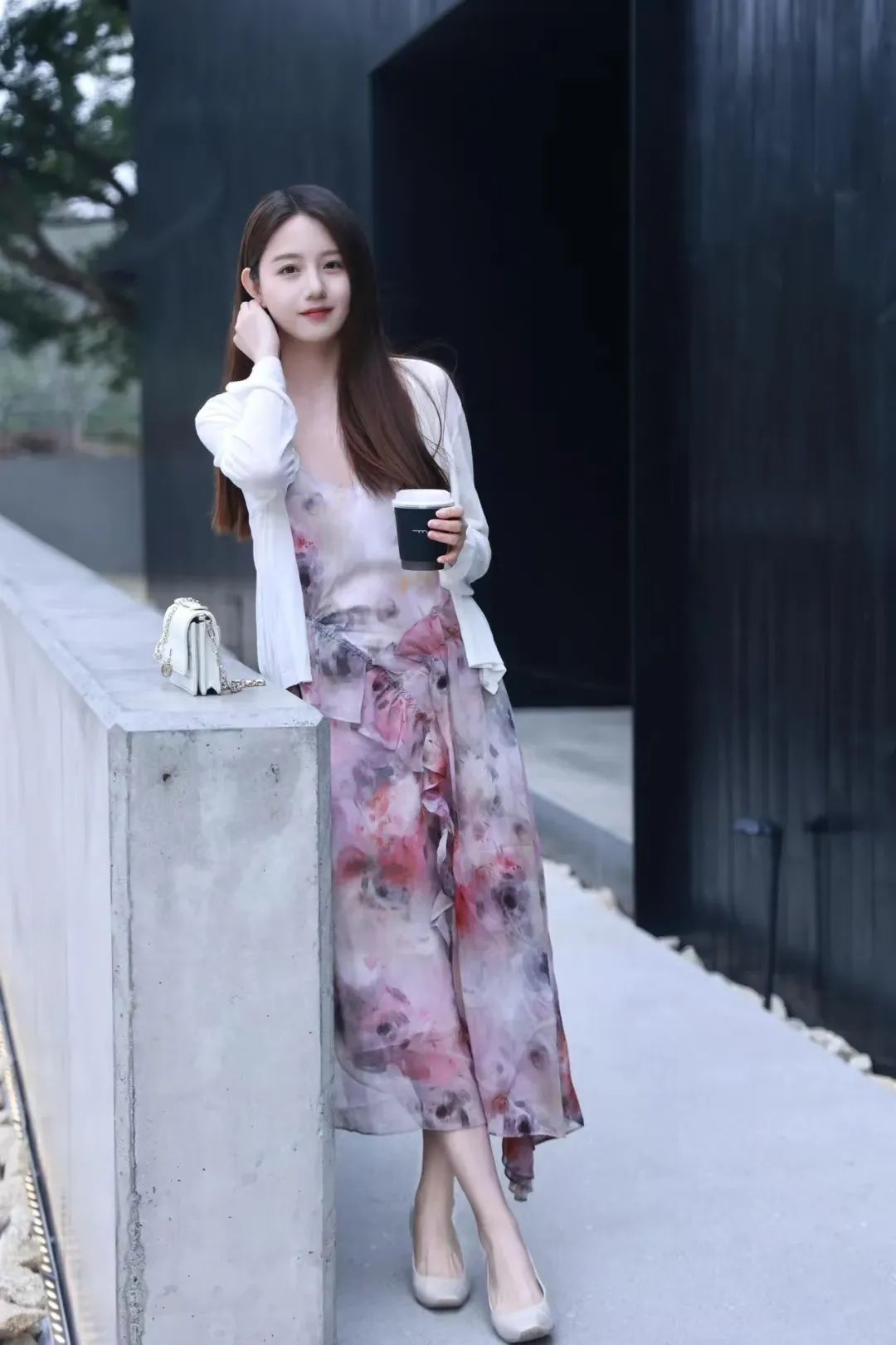 街拍美女,碎花长裙,姐姐也太好看了吧