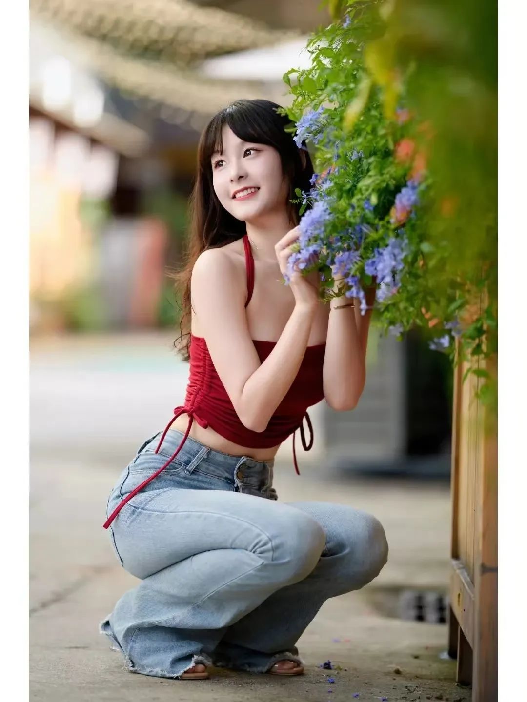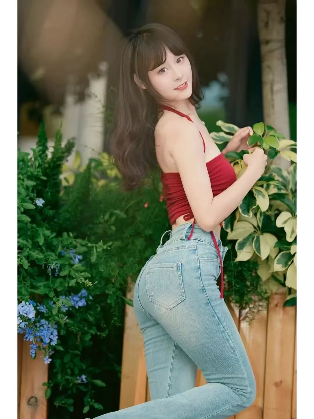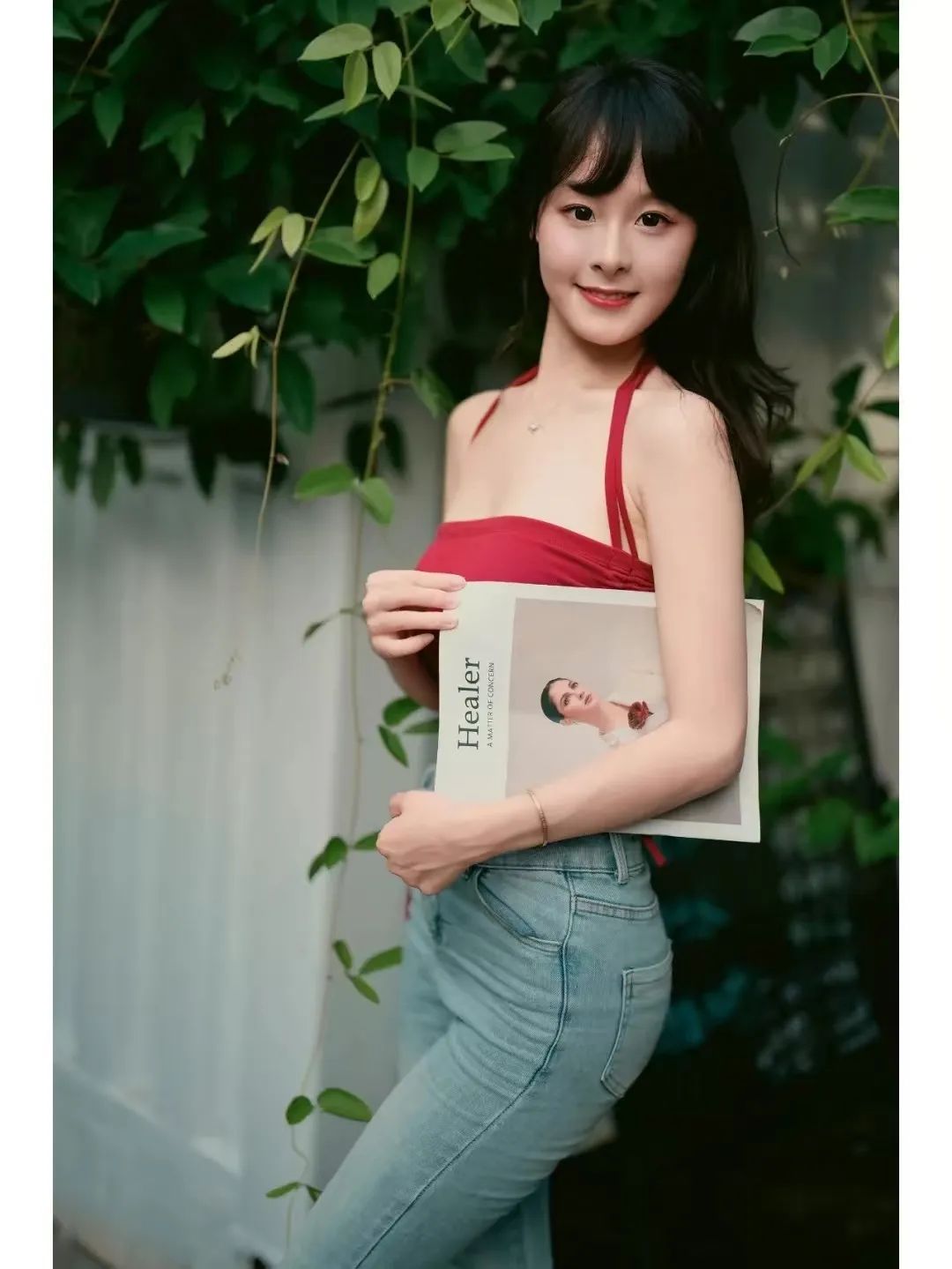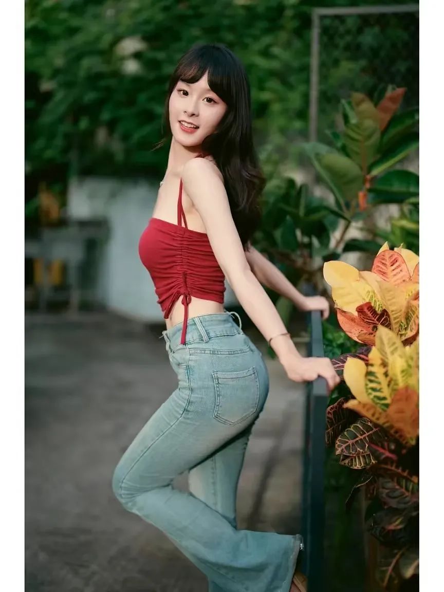 牛仔裤+小吊带,清纯阳光的美女,一见倾心
