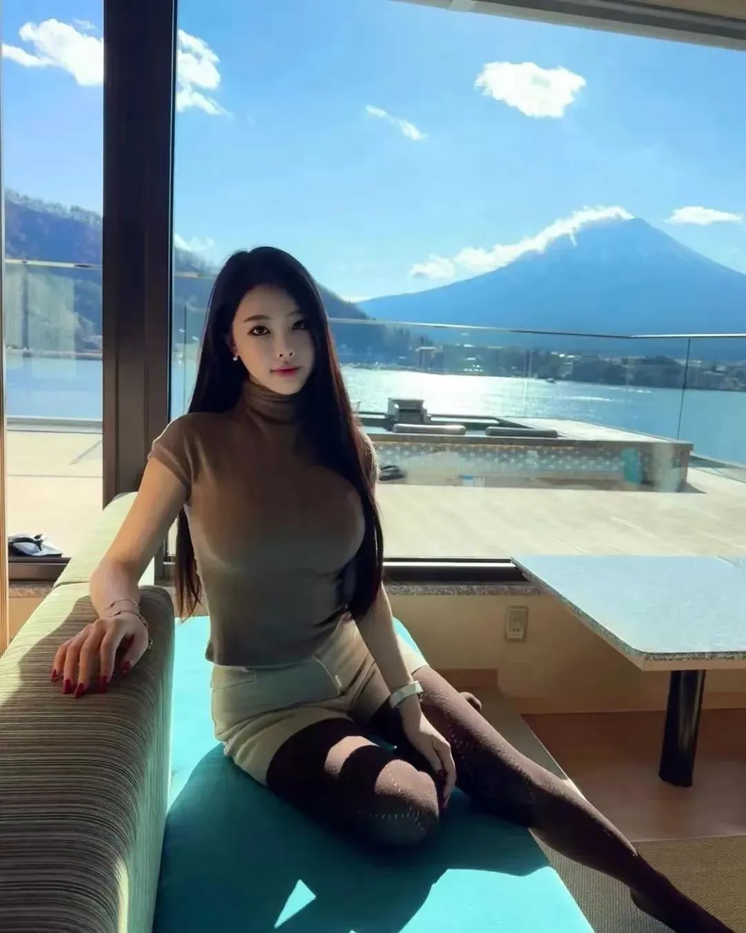 韩国网红美女,极品颜值和身材,完美腰臀比;