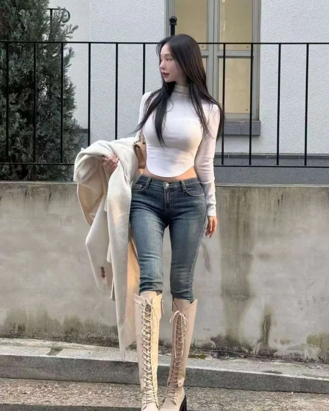 大长腿美女,身材傲人,紧身牛仔裤太棒了