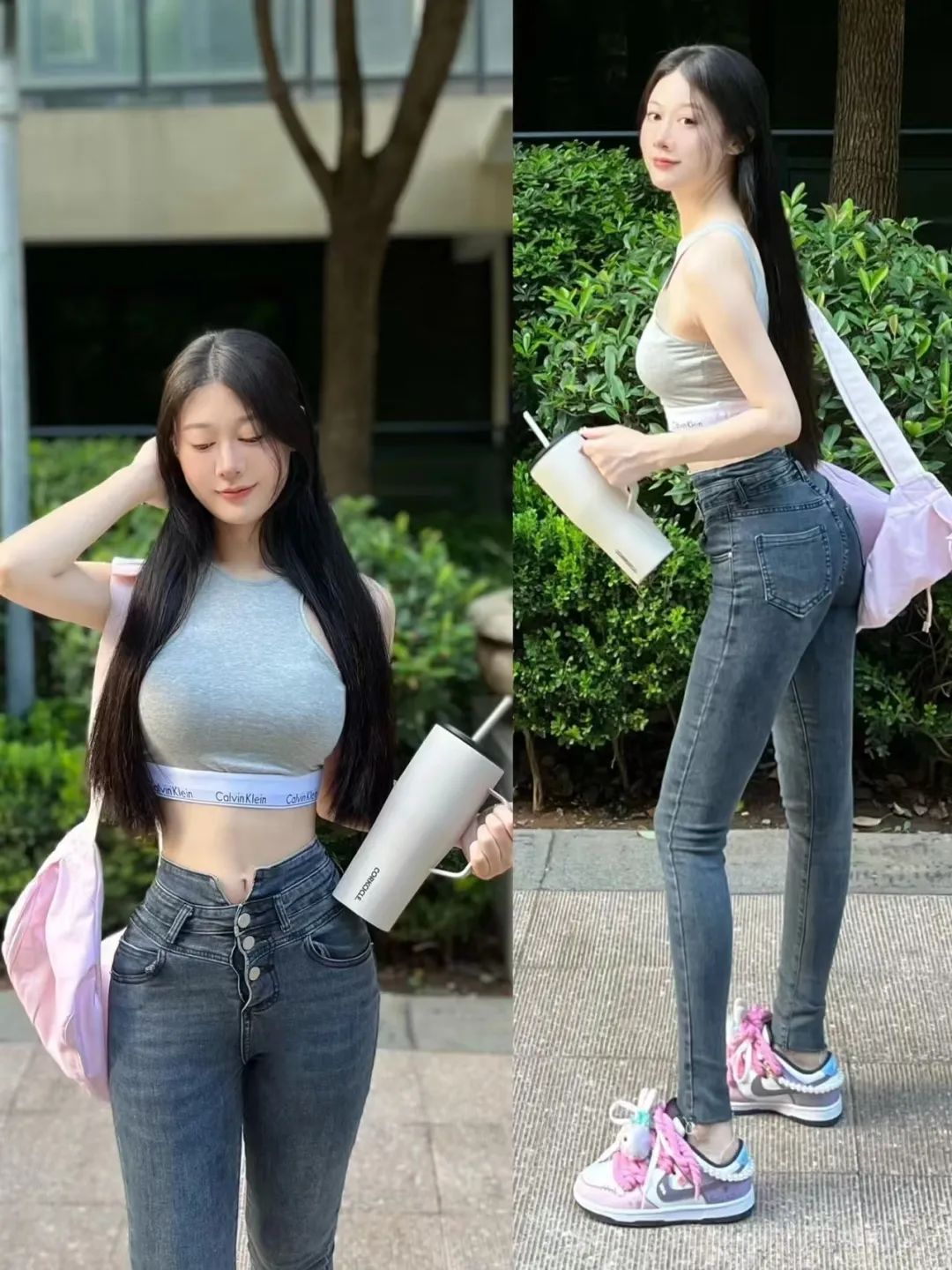 女生穿紧身牛仔裤,真的很凸显身材,太美了